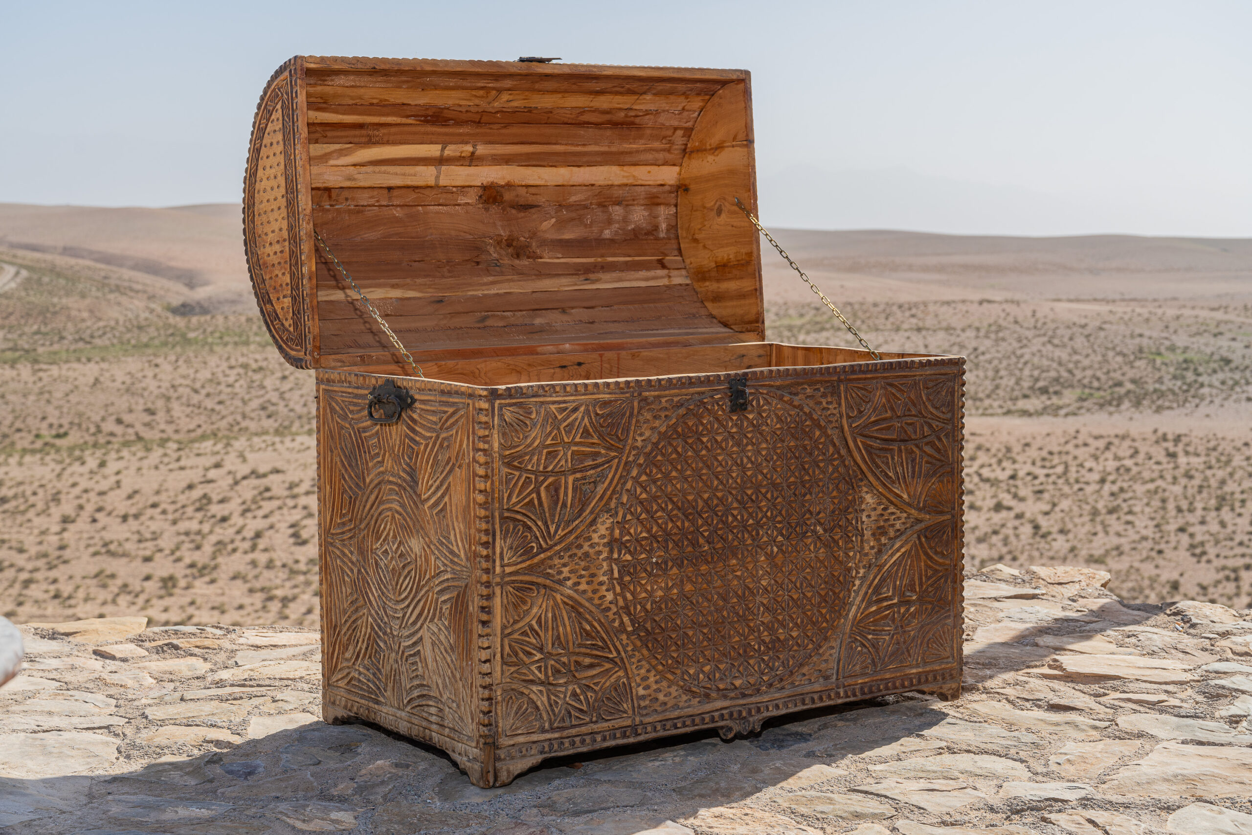 Ce coffre berbère est une pièce authentique qui incarne le riche patrimoine artisanal des peuples berbères.