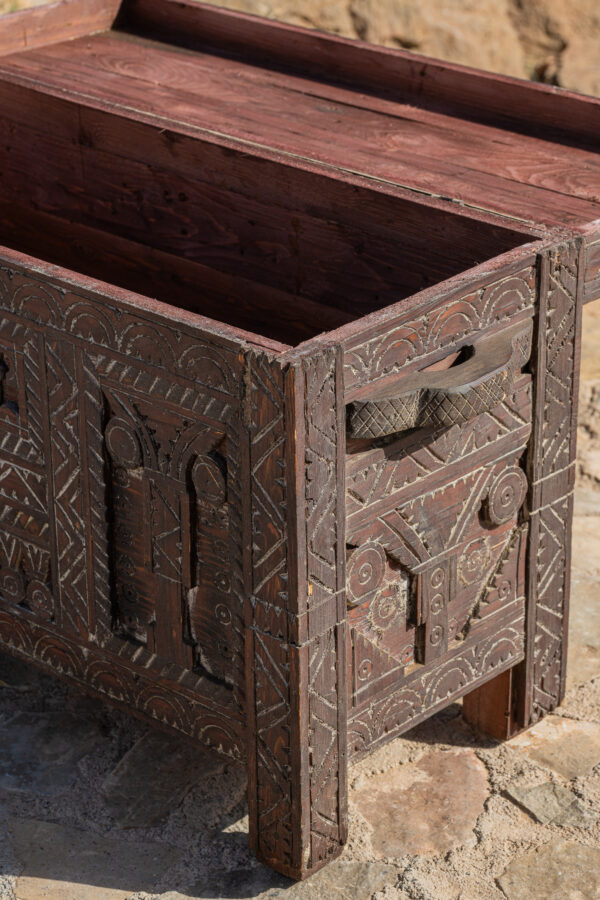 Ce coffre berbère est une pièce authentique qui incarne le riche patrimoine artisanal des peuples berbères.